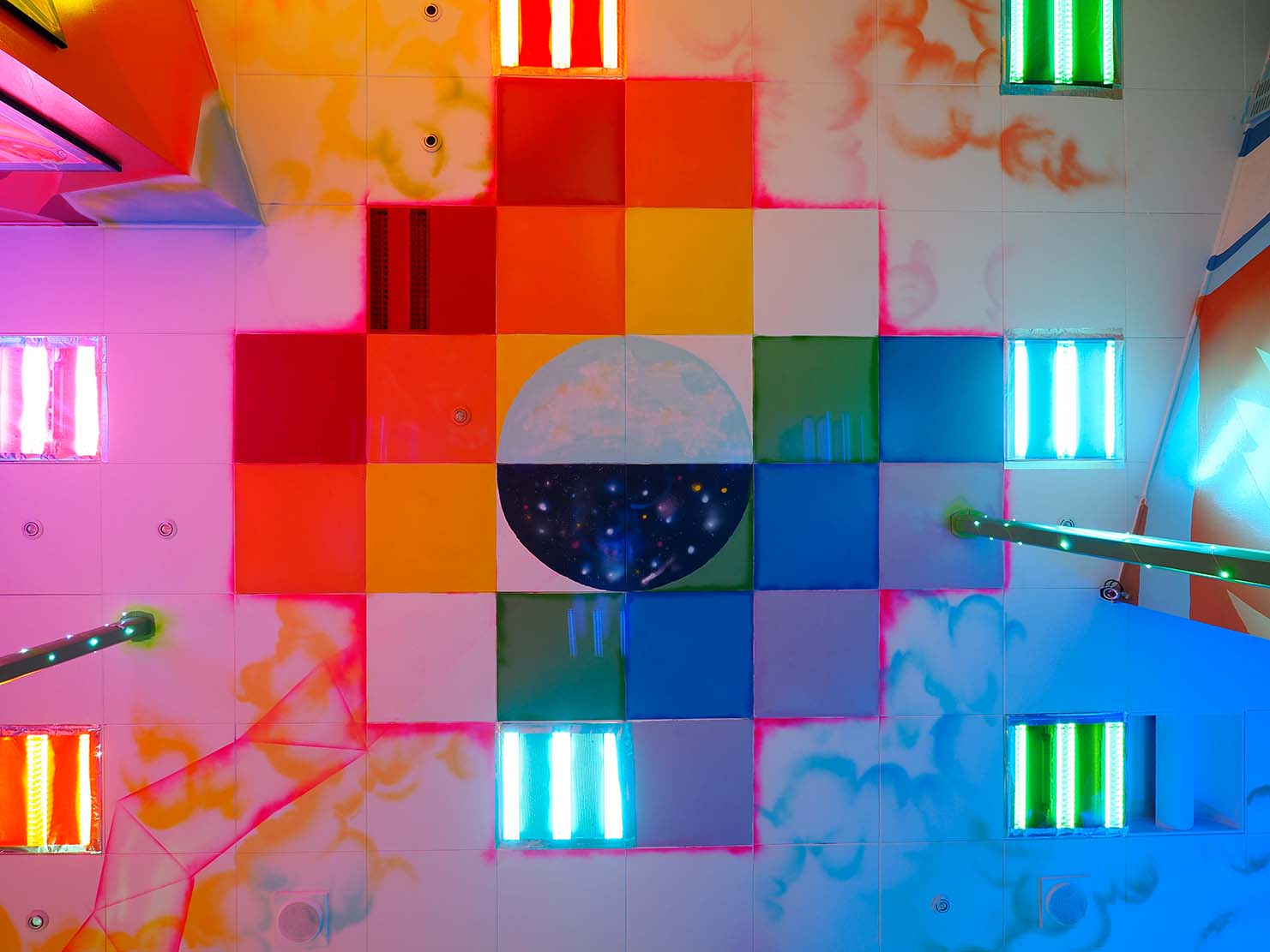 As a thinking being, the human being is free to remain in his materiality, or he can seek to “rise” spiritually. This path is, according to the beliefs, guided by spiritual beings, which are here reduced to their purest state: spheres. They open the doors to the cosmos, to the immensity of the spiritual. Dark and intimate, this space will invite you to introspection, to meditation.